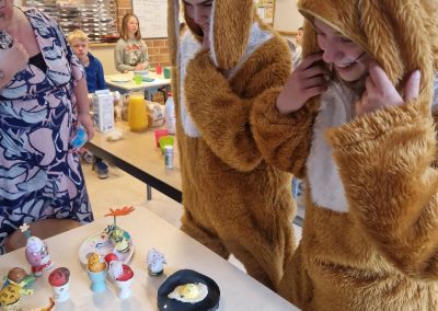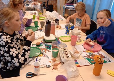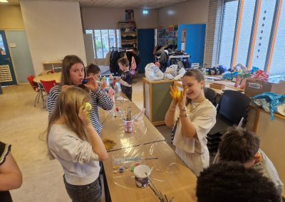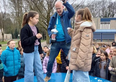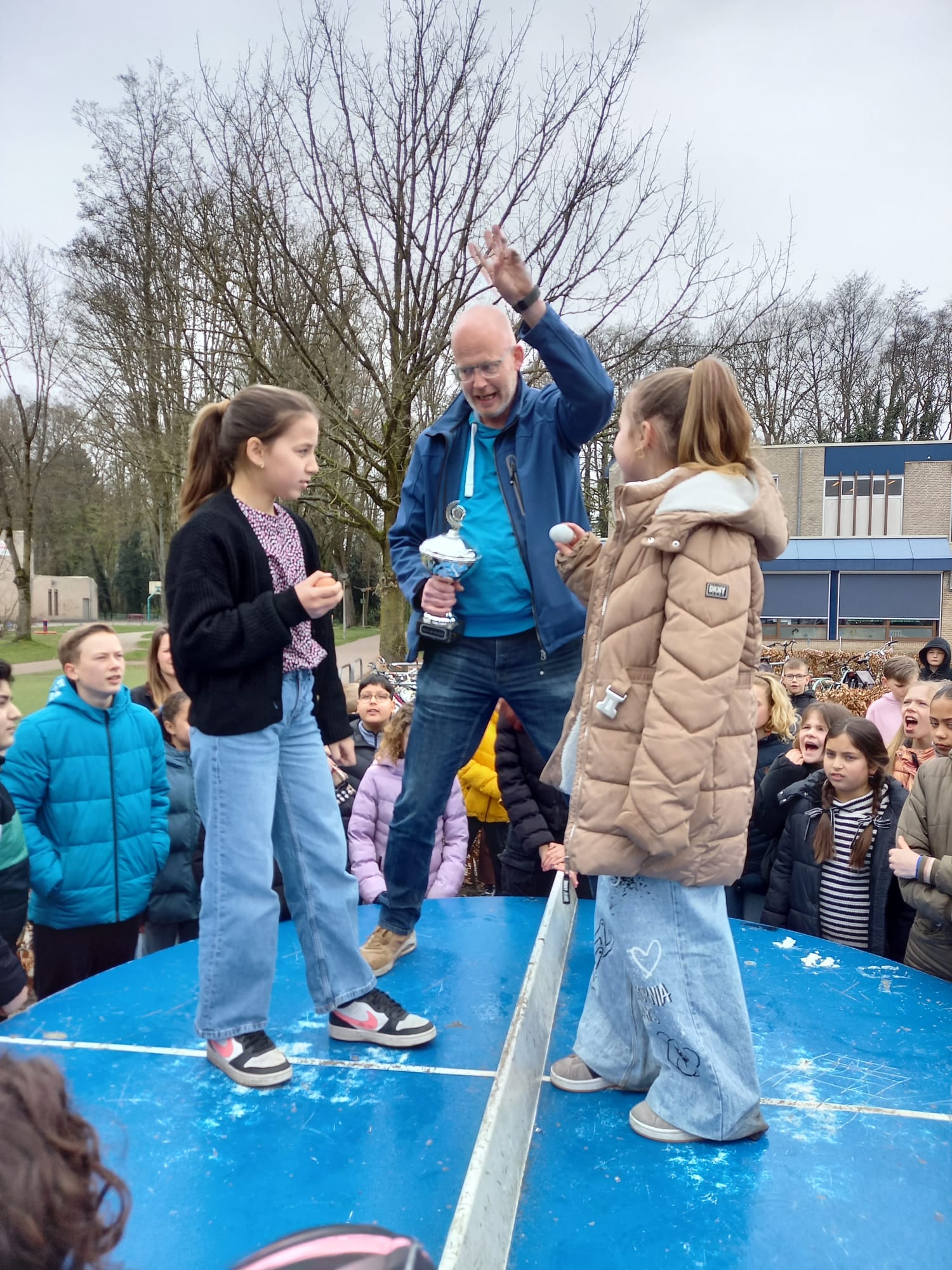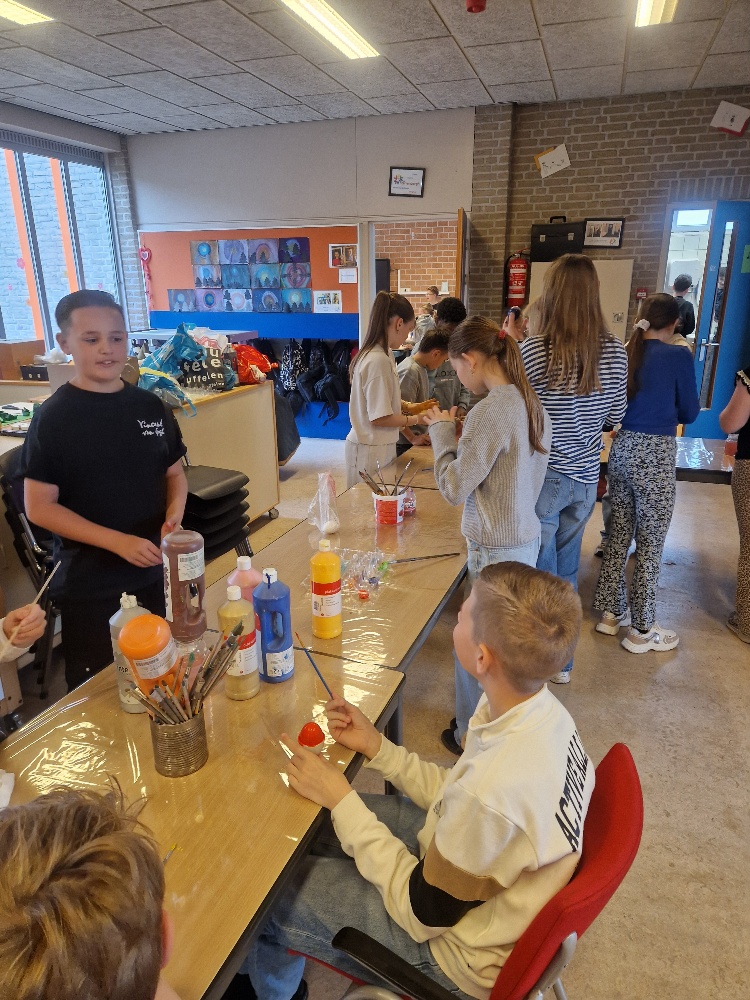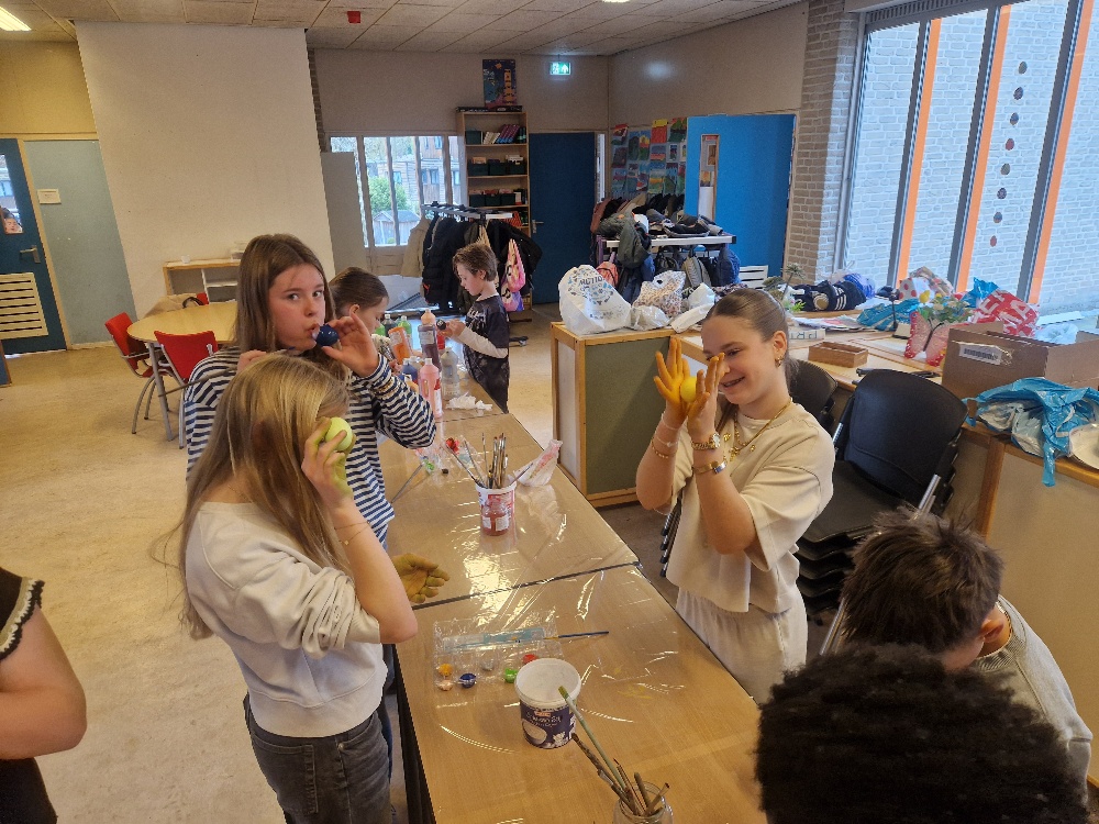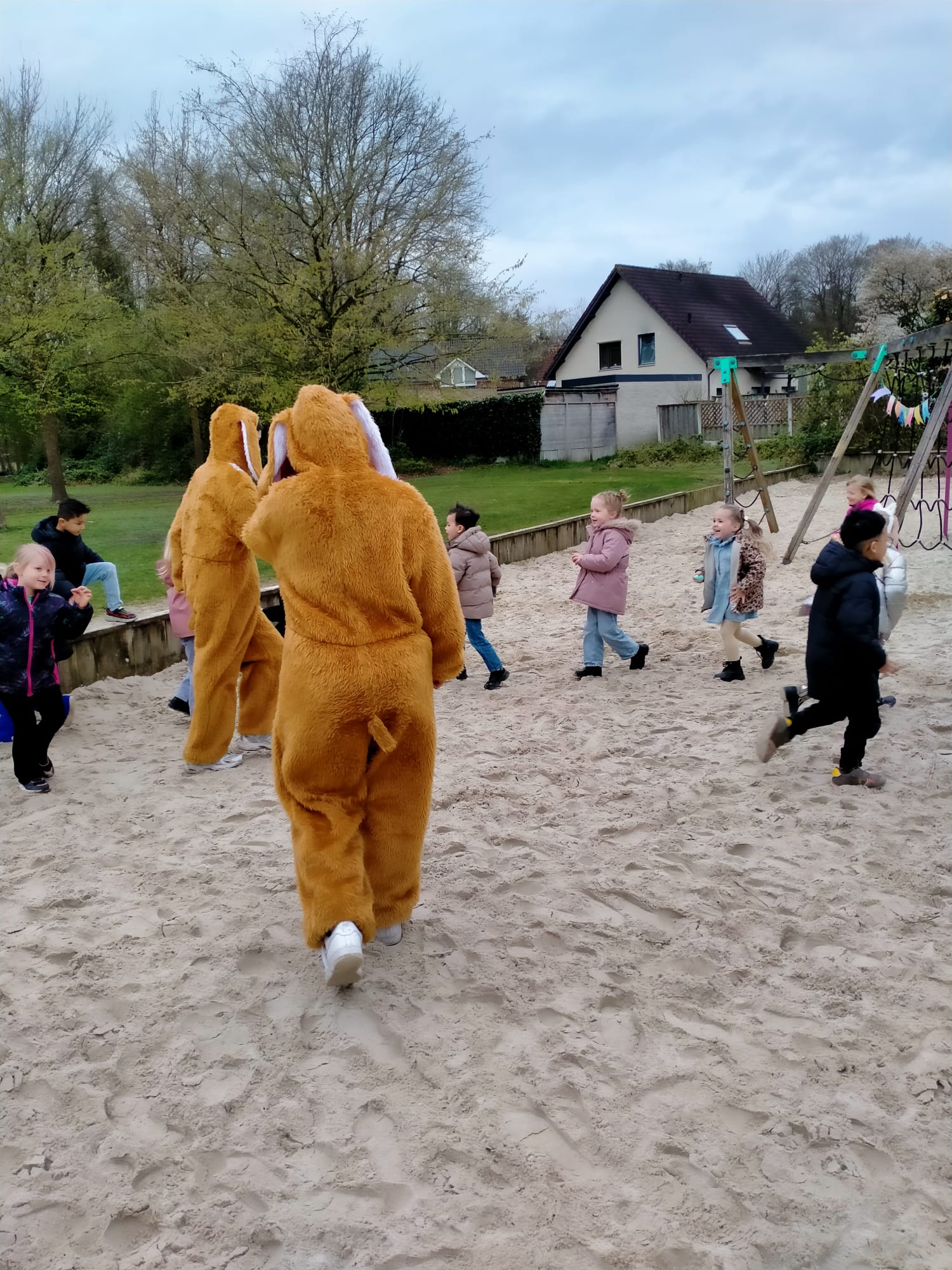 Pasen vierden we dit jaar op Witte Donderdag 2 april. De onderbouw ging met de paashazen op zoek naar verstopte eieren in de zandbak en het bos. De bovenbouw was druk met het versieren van eieren en eitje-tik. In de klassen werden voorrondes gehouden en de klassenwinnaars namen het tegen elkaar op in de schoolfinale op het plein. Hier won Djahlesa de beker en mag zich een jaar lang ‘ei-van-de-school’ noemen.