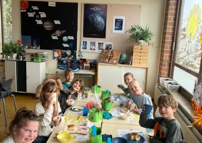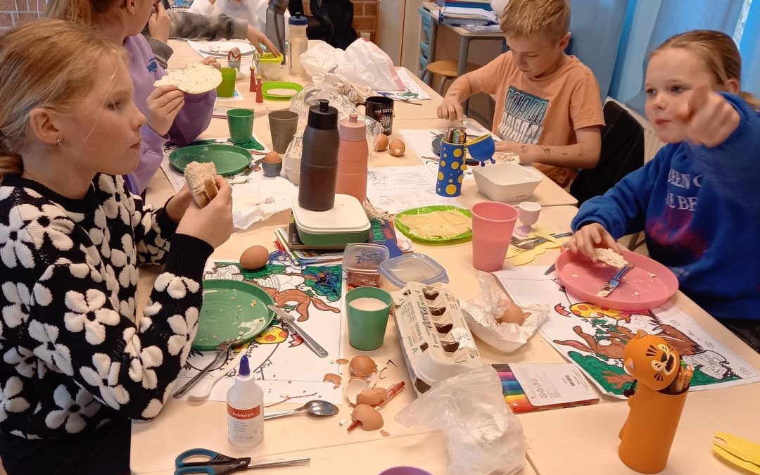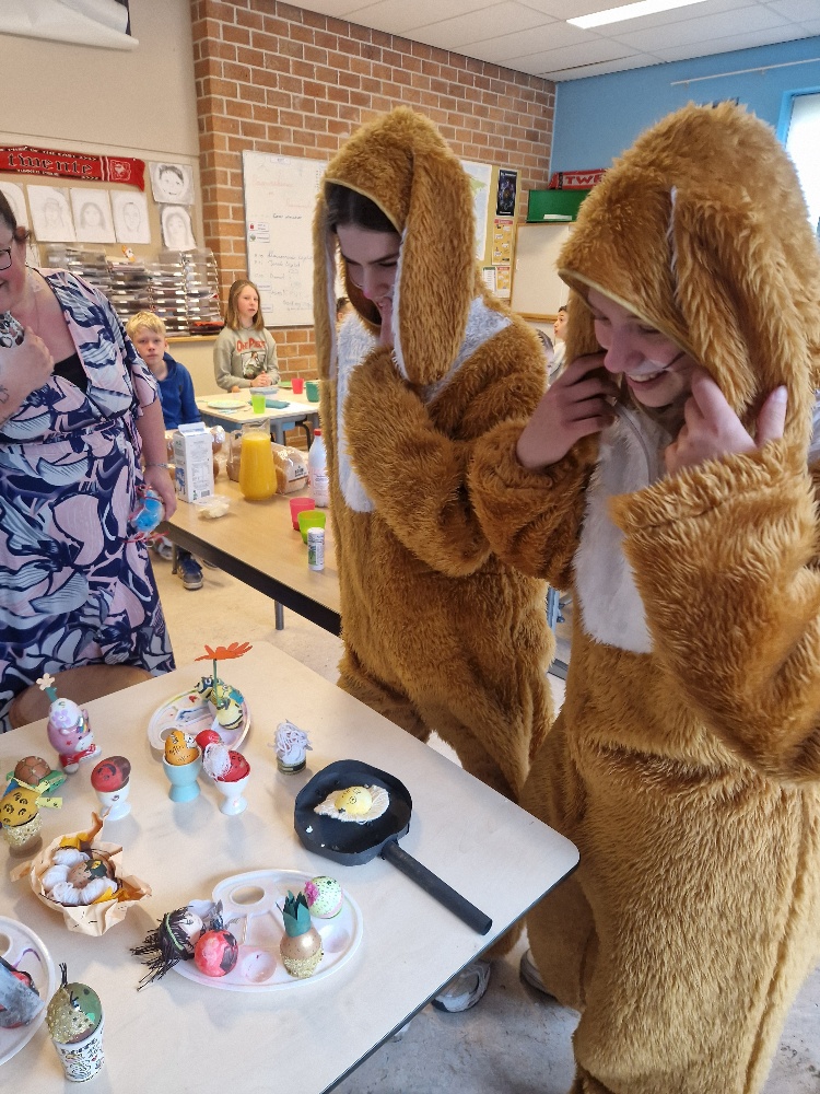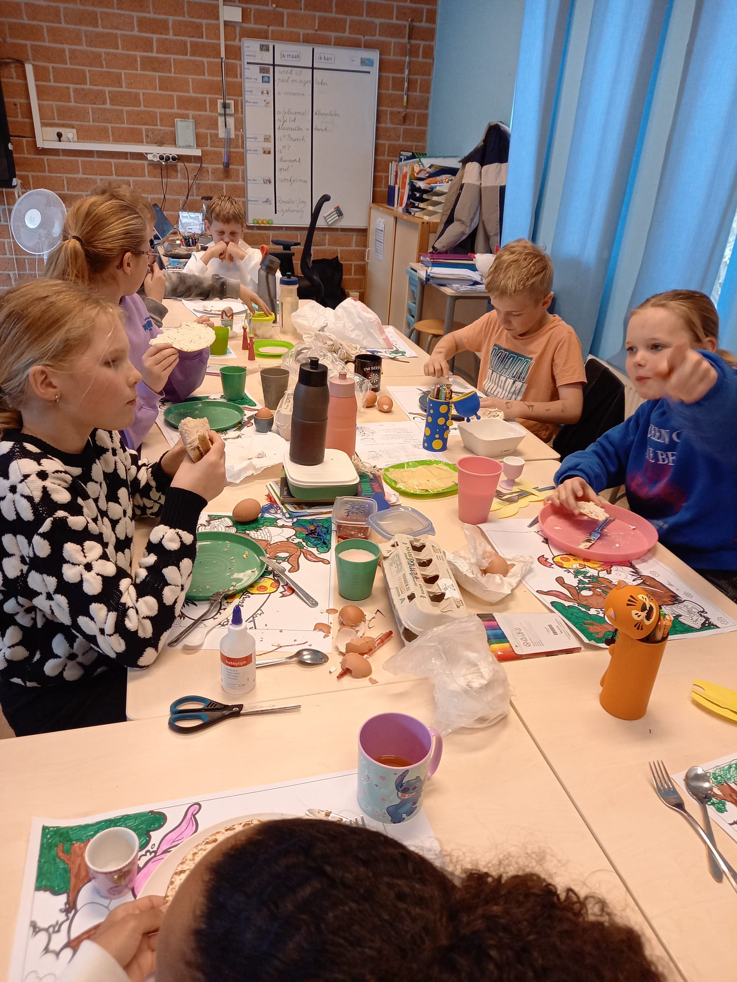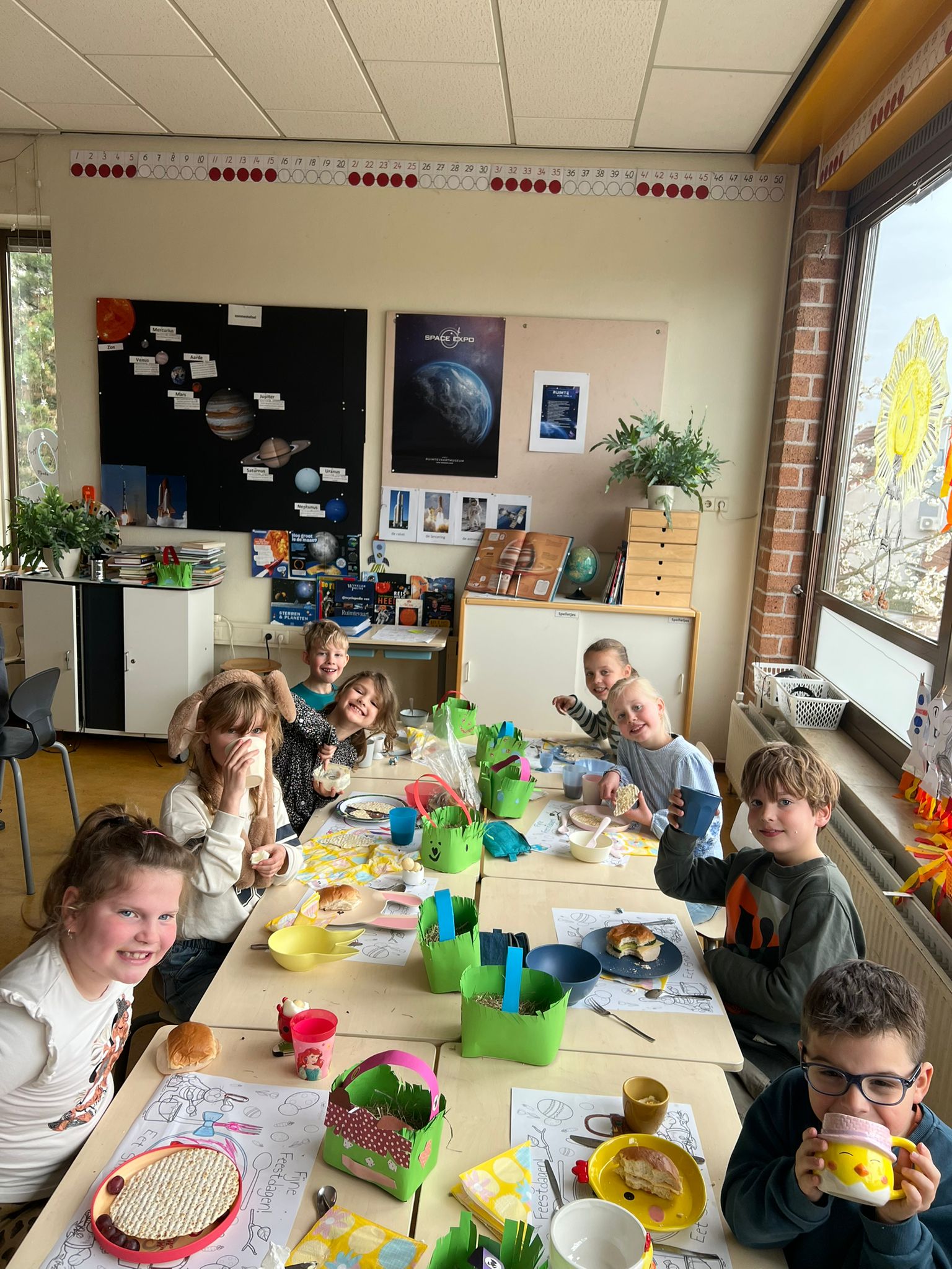 Om 12:00 uur was het tijd om lekker te brunchen in de klas. Matzes en eieren mochten natuurlijk niet ontbreken. Het was een gezellige dag.