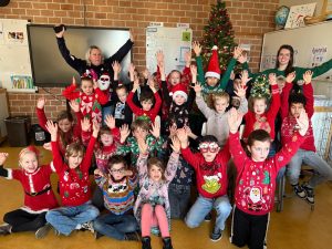 Op woensdag 17 december was iedereen op z’n mooist gekleed voor het kersdiner. Om 16:45 kwamen vaders en moeders met hun kinderen allerlei lekkere hapjes brengen die we met smaak hebben opgegeten. In de tussentijd was er op het plein de mogelijkheid voor ouders/verzorgers om te genieten van warme chocomelk of een glaasje glühwein verzorgd door de OGR. Om 18:15 was het tijd voor de lampionoptocht rond de vijver. Onder leiding van de kerstman was het een waar lichtjesspektakel.
