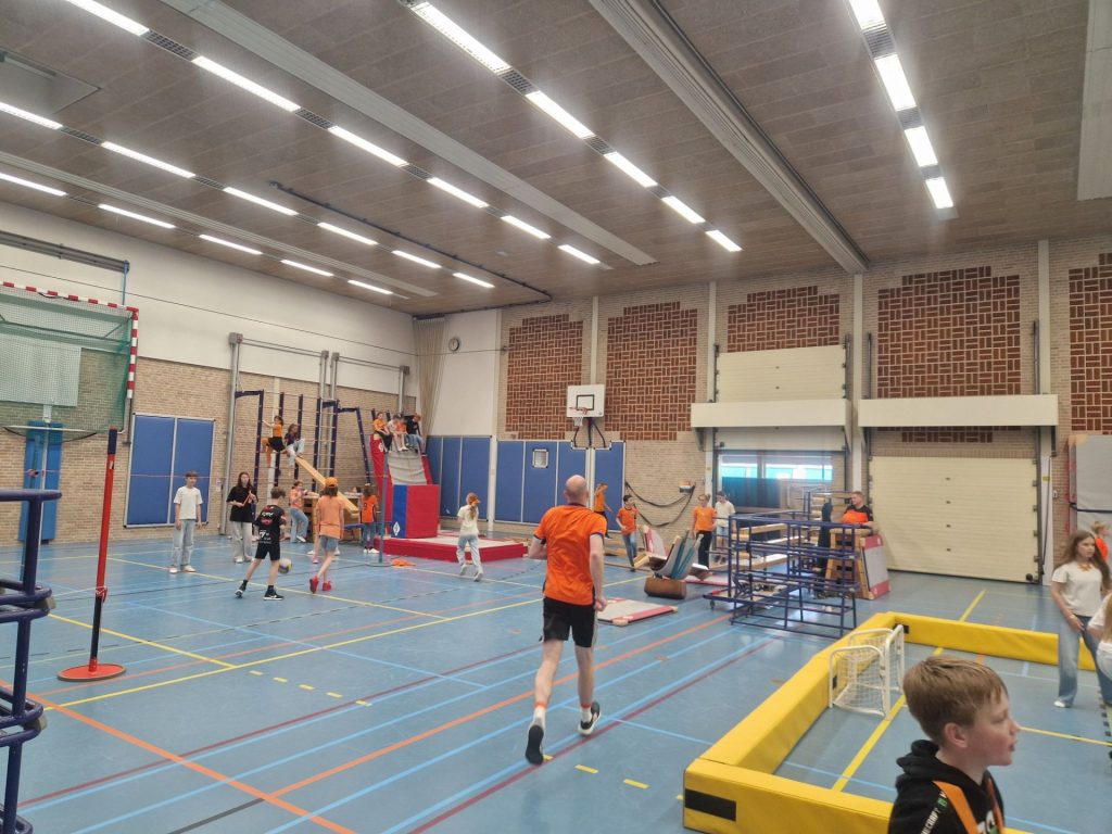 Na de dans was het tijd voor het ontbijt. Direct hierna tijd voor sport en spel. De groepen 1 en 2 deden oud Hollandsche spelletjes en voor groep 3 t/m 8 was er een circuit van vossenjacht, bosspel en gym activiteiten op het veld en in de gymzaal.